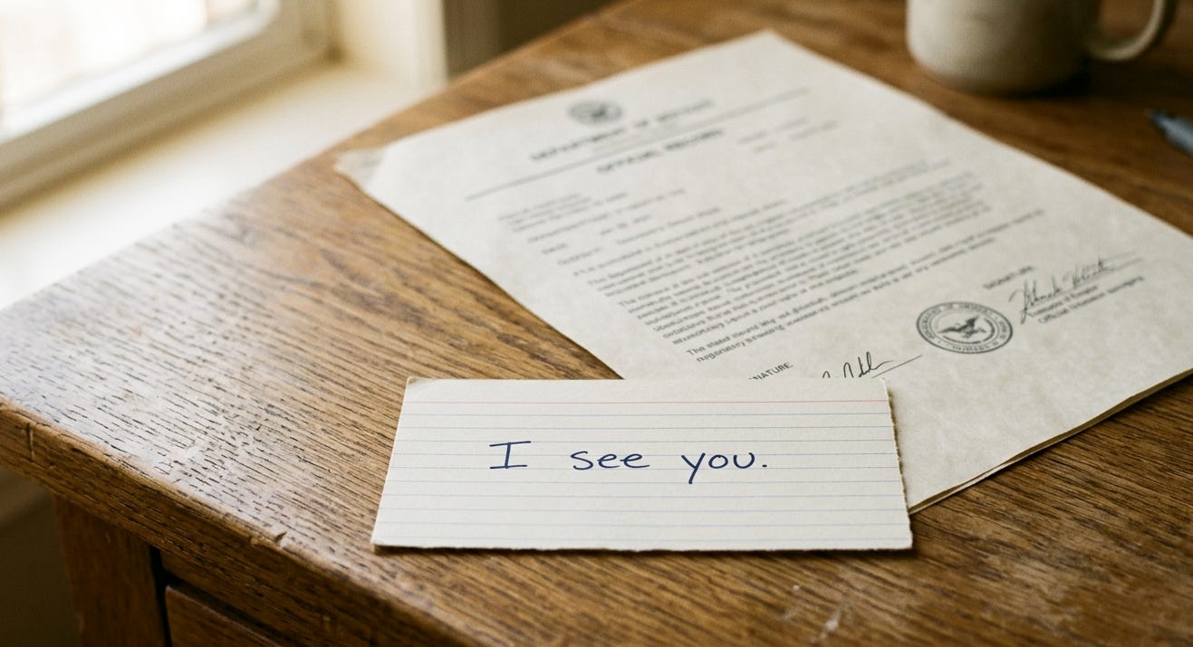 A form says: My backside is covered. My sentence says: I see you. Those are not the same thing, and the gap between them is where most technology support goes heartbreakingly wrong.